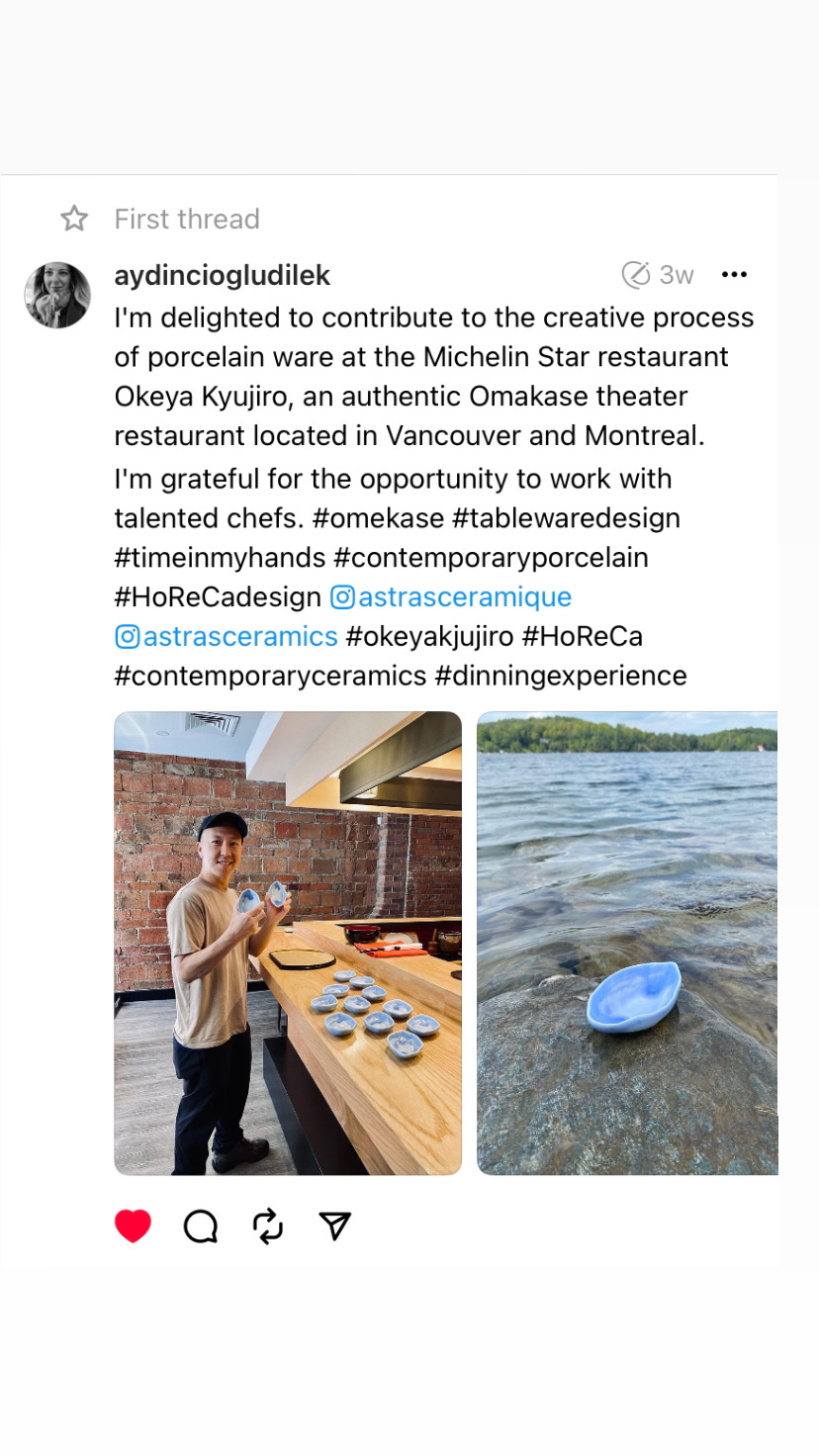 #TablewareDesign #ContemporaryCeramics #SculpturalObjects #PorcelainWare #MichelinStarRestaurants #HoReCa #HoReCaDesign #Chef'sChoice #DinningWare #DinningExperinece #macaKiziHotel #OkeyaKyuJiro #MontrealDesigner #VancouverDesign #Bodrum #Golturkbuku #Mediterranean #MediterraneanDesign #AstrasCeramics #AstrasCeramique #TablewareObjects #ContemporaryCeramics #CeramicsDesigner #Porcelaine #VaisellePorcelaine #CulinaryDigest #MICHELINStar24 #MICHELINGuideTR #MICHELINGuide #OneMICHELINStar #MICHELINStarVancouver #MICHELINStar23